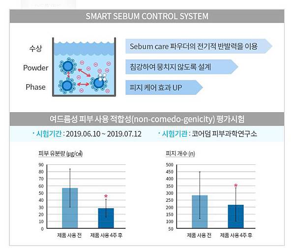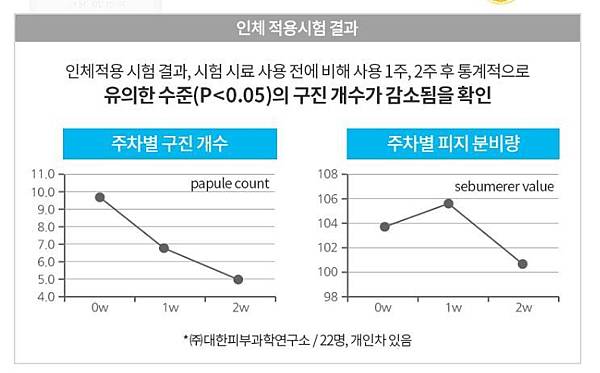 皮脂數量:使用前134.82 使用兩周後下降至111.64 使用四周後下降至 105.09