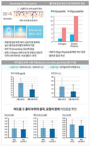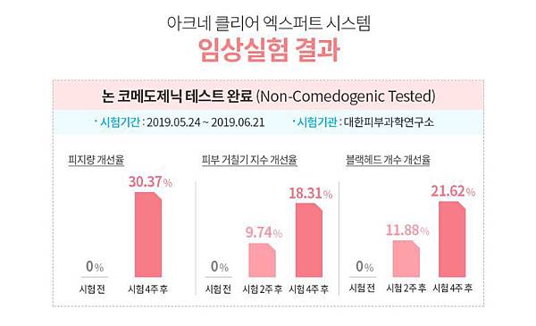 皮紙分泌水平:使用前54.95 使用兩周後下降至51.09 使用四周後下降至 48.45